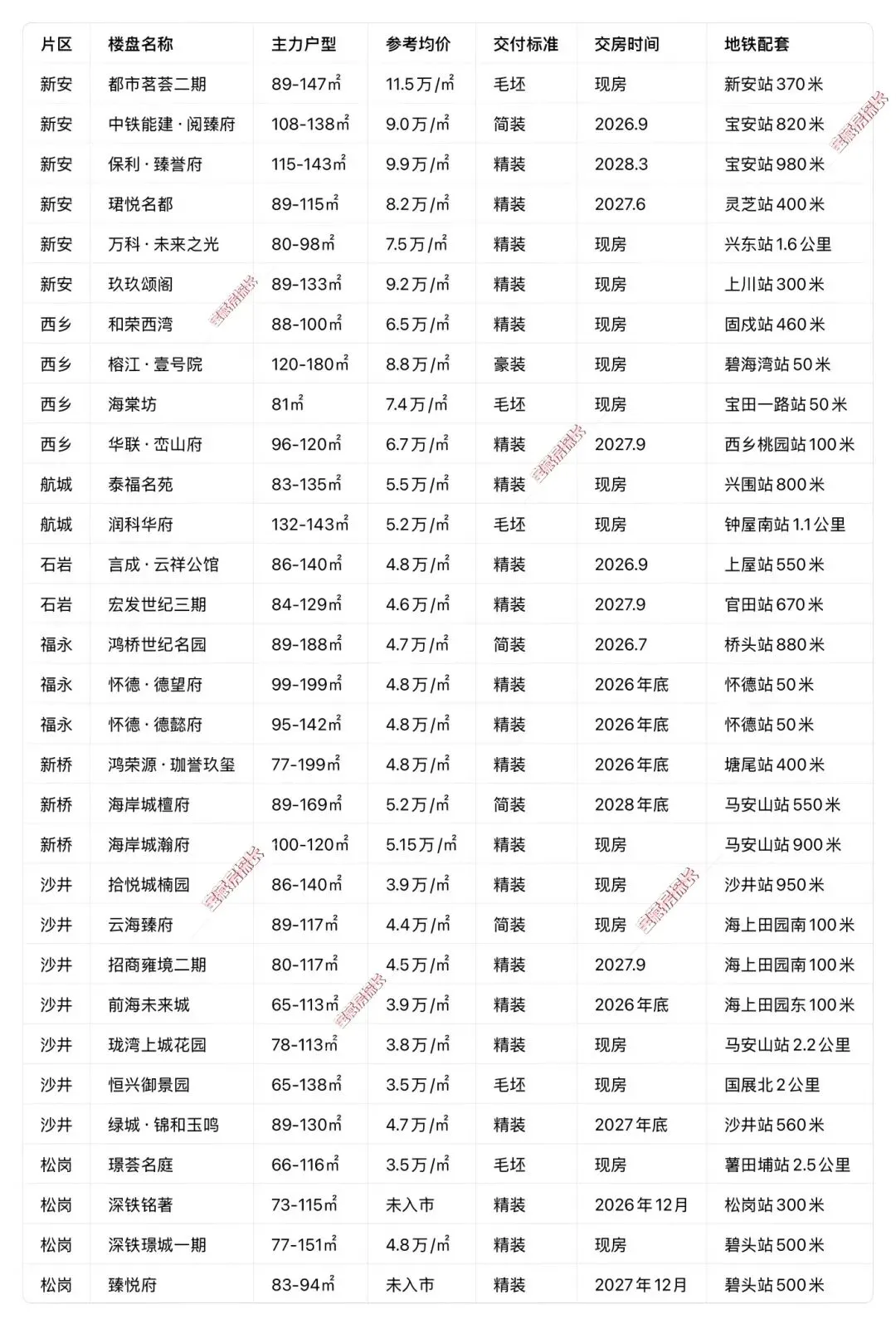 • 核心特点:宝安新房成交绝对主力,流通性最好,覆盖沙井、福永、新桥、石岩、航城全片区
