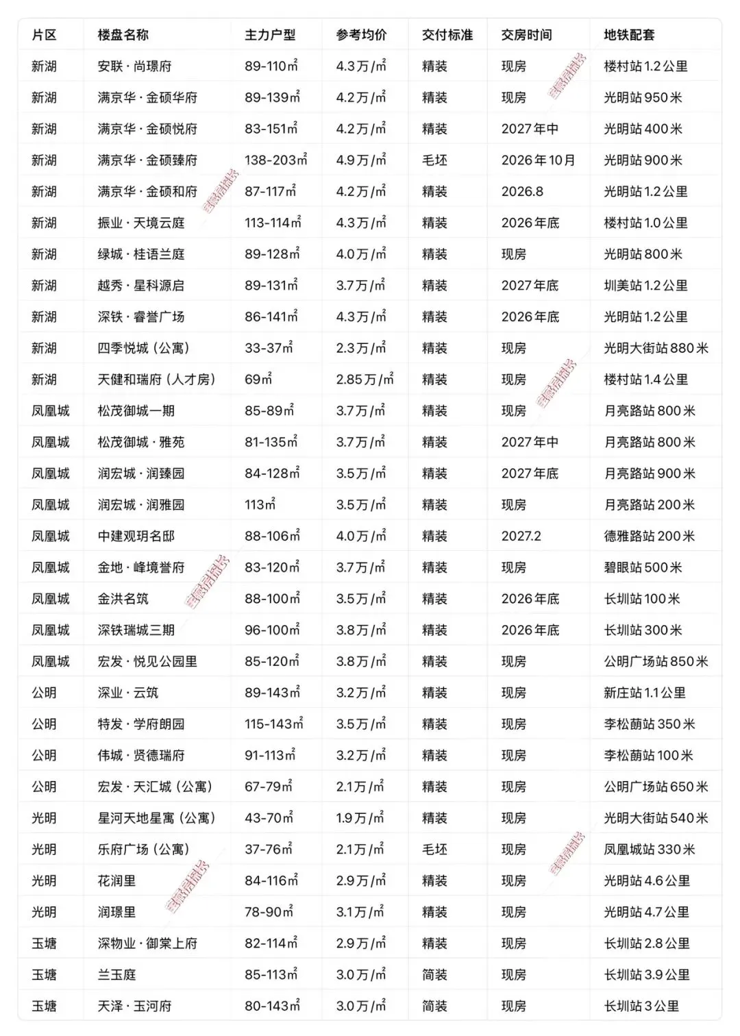 • 核心特点:光明新房成交绝对主力,流通性最好,覆盖新湖、凤凰城、公明全片区,纯住宅为主
