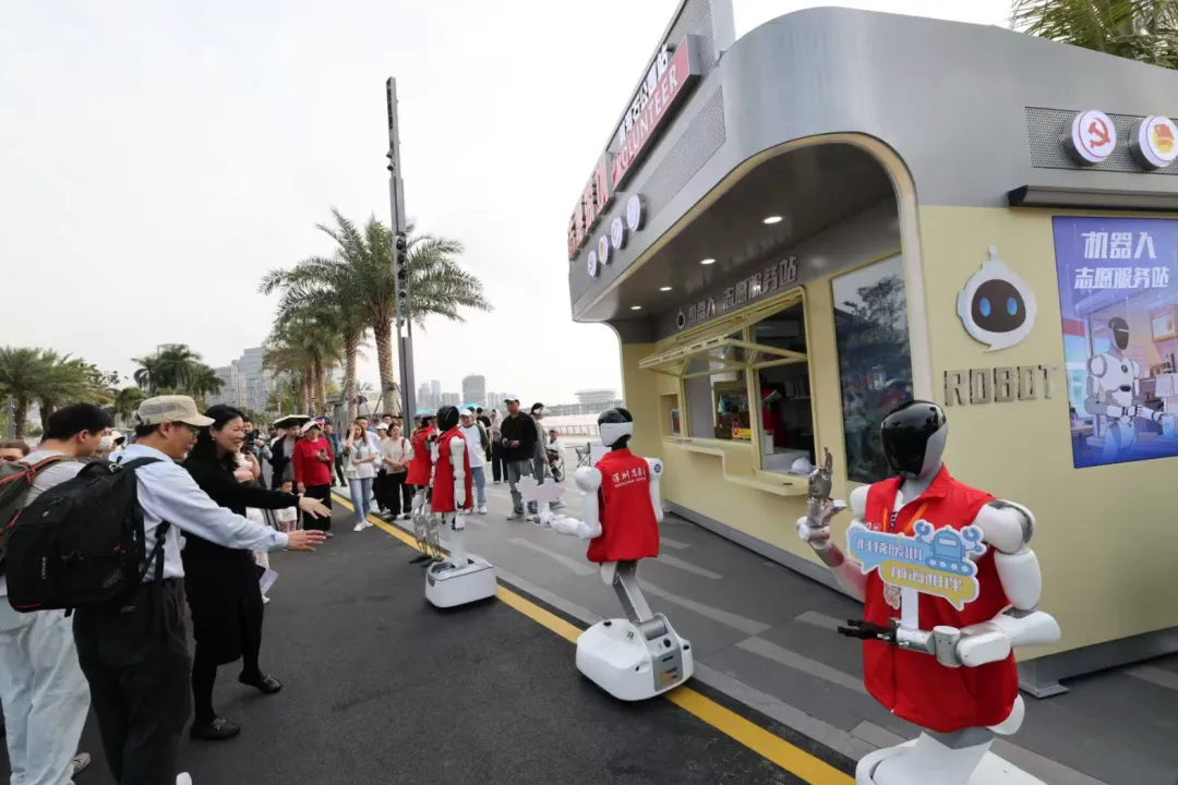 在深圳前海石公园机器人志愿服务站,一群特殊的“志愿新伙伴”成为园区“顶流”,机器人志愿者可实现日常咨询、便民服务、巡逻提醒、知识科普、政策宣讲、应急服务、互动交流、娱乐表演等八大服务功能,增添了一道兼具科技感与文明温度的亮丽风景线,成为深圳“志愿者之城”建设的又一创新实践。