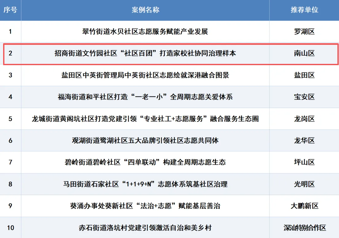 其中,南山区委社会工作部介绍了南山区在深耕国际化社区营造、打造国际化城市志愿项目、构建多方协同的志愿生态等方面的经验做法。南山区建设7个国际服务阵地,培育了超1500人的国际志愿者队伍,通过“境外人员服务站+国际志愿者队+多元文化交流”模式,培育清华大学深圳国际研究生院巴巴多斯籍学生卓远成为深圳首位“外籍楼栋长”。