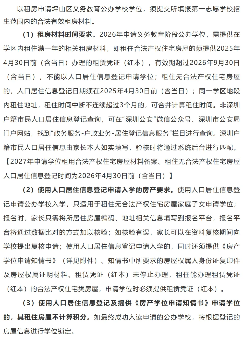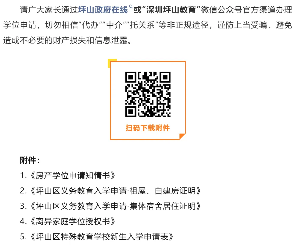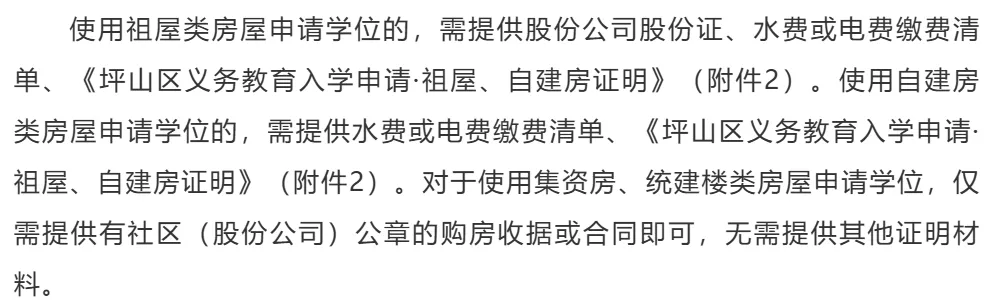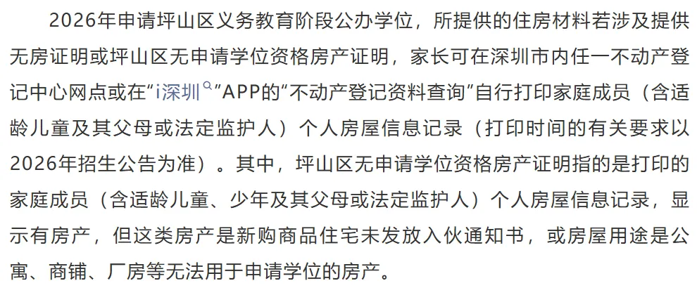 无房证明或坪山区无申请学位