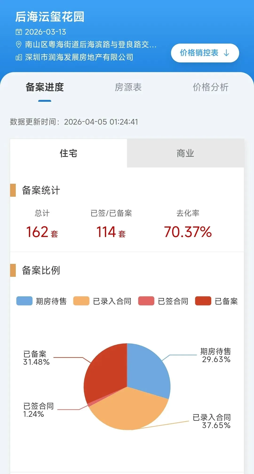 南区已备案96.26%,北区2栋2单元已备案70.37%,卖得是真不错。