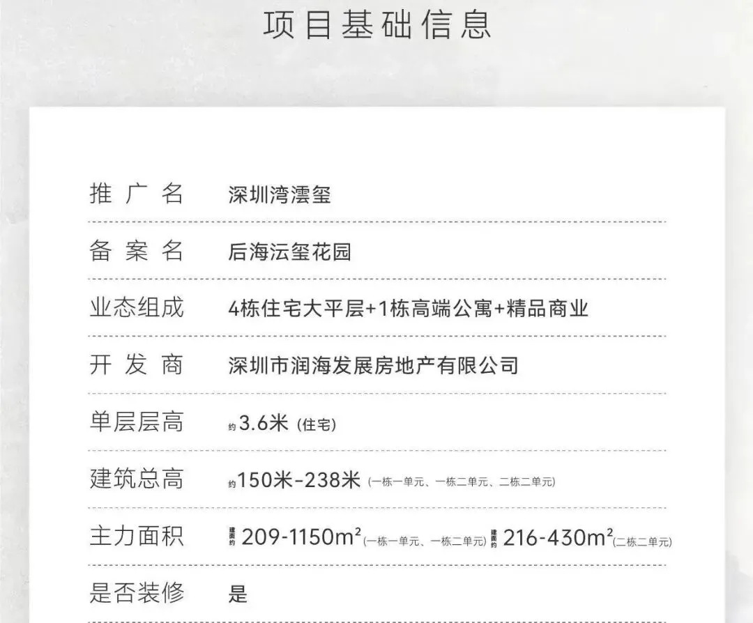 大卖的深圳湾顶豪「深圳湾澐玺」即将加推最后1栋—南区2栋1单元,预计下周取证入市。户型面积为202-225-258㎡,3个面积段每层各1户,4梯3户,35层,共87套。