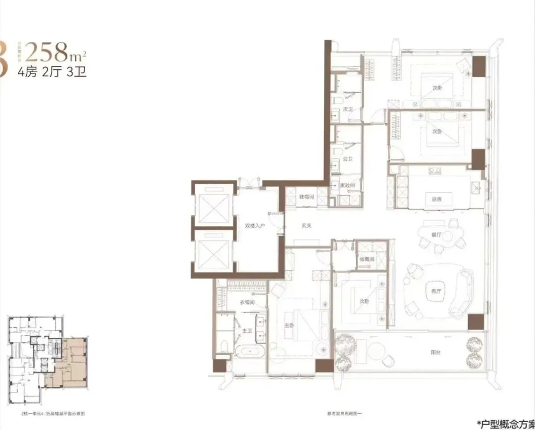 建面约258㎡户型