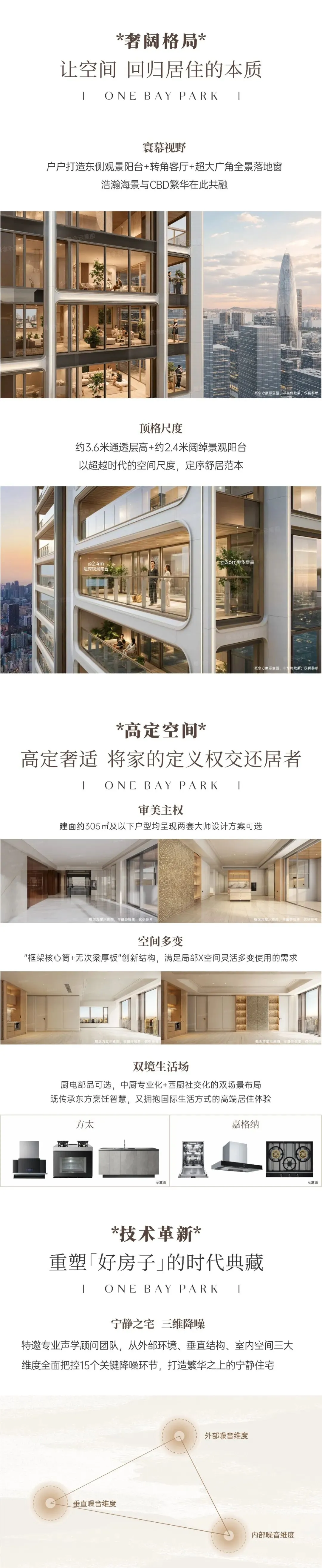 因此项目低层设大阳台看花园景观,超高层采用落地玻璃无遮挡看深圳湾海景,做到户户拥有良好的景观视野。