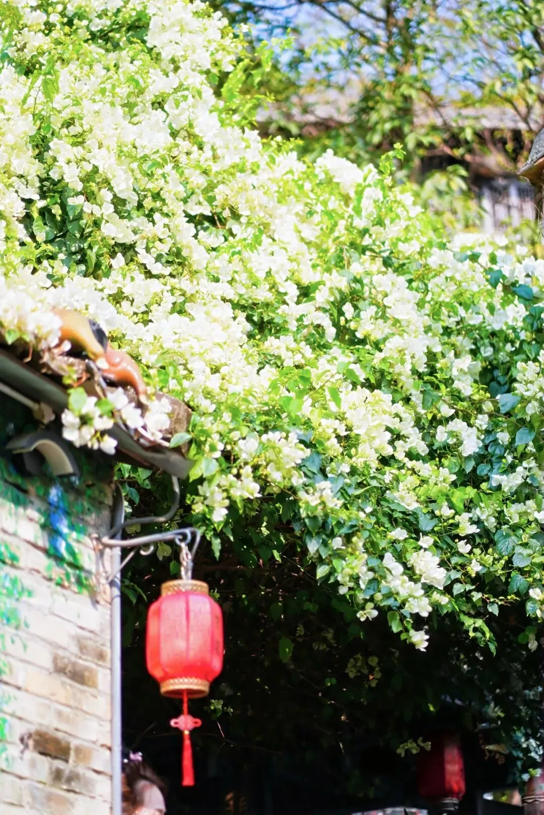 清明节假期限定氛围布置,搭配简约的古镇街景与自然花景,不用找角度,站着就是画中人,随手拍也能轻松出片。