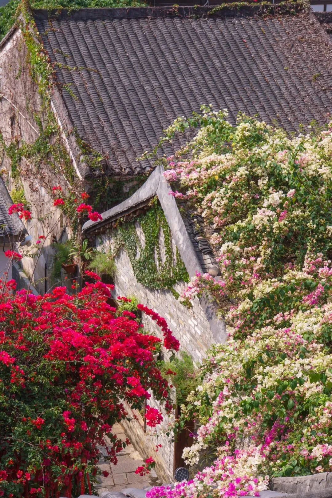 三角梅开成瀑布,