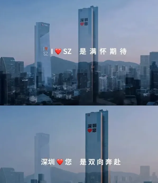 有个来深圳旅游的网友,突然看到一座大楼上有一条标语——“深圳爱您”。他感到非常惊喜,因为在别处看的都是“我爱某某”,第一次看到“某某爱您”这样的标语,让他感到无比的温暖。