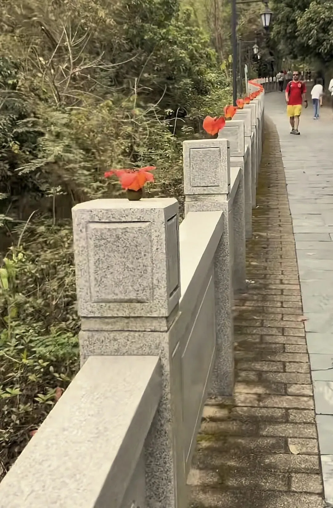 进入3、4月份,木棉花整朵整朵地掉在地上。在深圳上梅林公园,有深圳市民把这些花朵摆成爱心形,摆成“2026”。还有市民接力,把花朵放到每一个登山口的扶栏上,让木棉花形成一条花带,很美。有网友问,“没有人去破坏吗?”有人回答:“这么美的花摆出的造型,除了风,你忍心去破坏吗?”