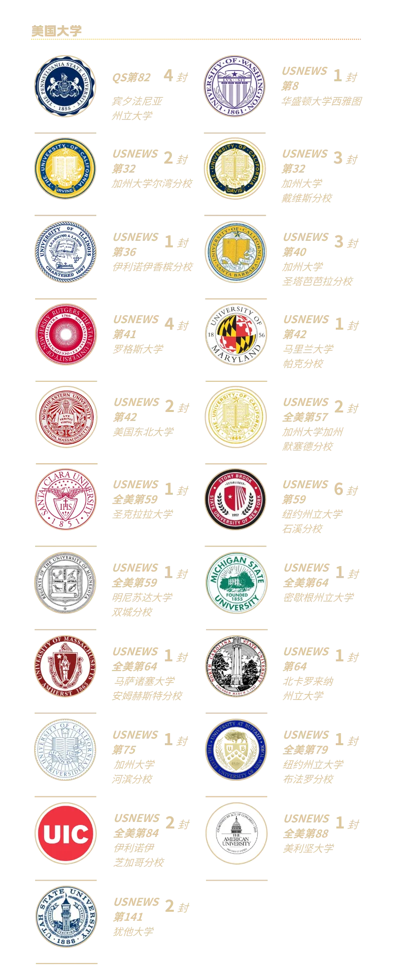 100%斩获全美TOP60名校录取,覆盖加州系、密歇根大学等顶尖院校,更有多份高额奖学金加持,升学实力硬核!