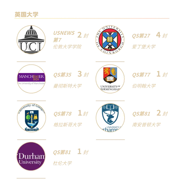 100%入围QS世界TOP35名校,包揽G5/罗素集团顶尖院校,多校多专业录取,升学选择拉满!