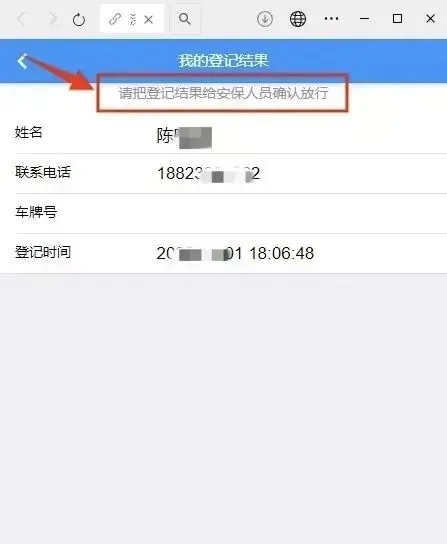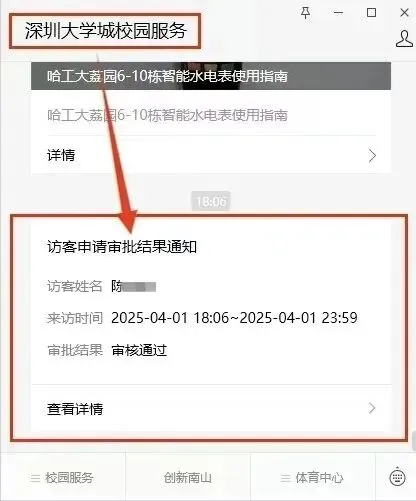 When you return to the public dialog box, you will receive the “Visitor Approval Result Notification”, click on it to get the “My Registration Result”, and present the registration result to the security personnel to confirm the release.