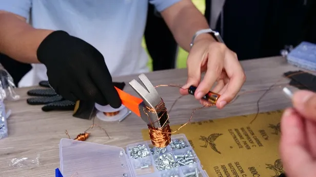 “简易电机制作”中,同学们用简易材料搭建电机,看着线圈转动,读懂电能驱动机械的原理;“电磁秋千制作比赛”里,参赛团队控制电路通断,在实践中锻炼物理功底与工程思维。