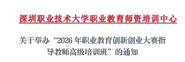 【深职大 4月17-21日 】关于举办“2026年职业教育创新创业大赛指导教师高级培训班”的通知