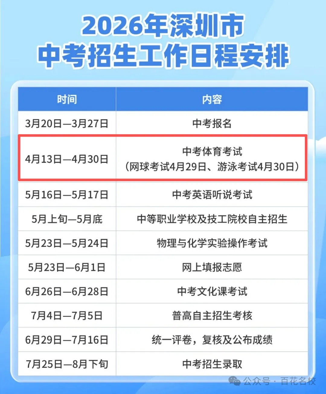 中考体育考试时间:4月13日-4月30日