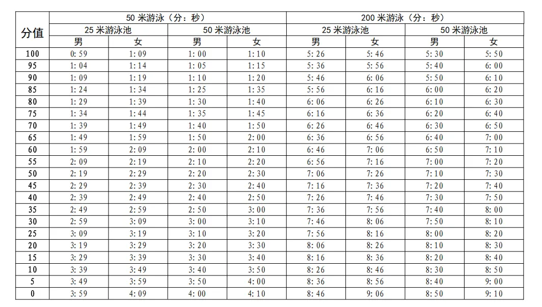/男生1000米跑)、200米游泳(不限泳姿)、