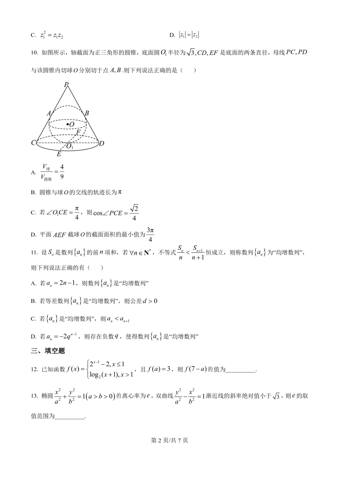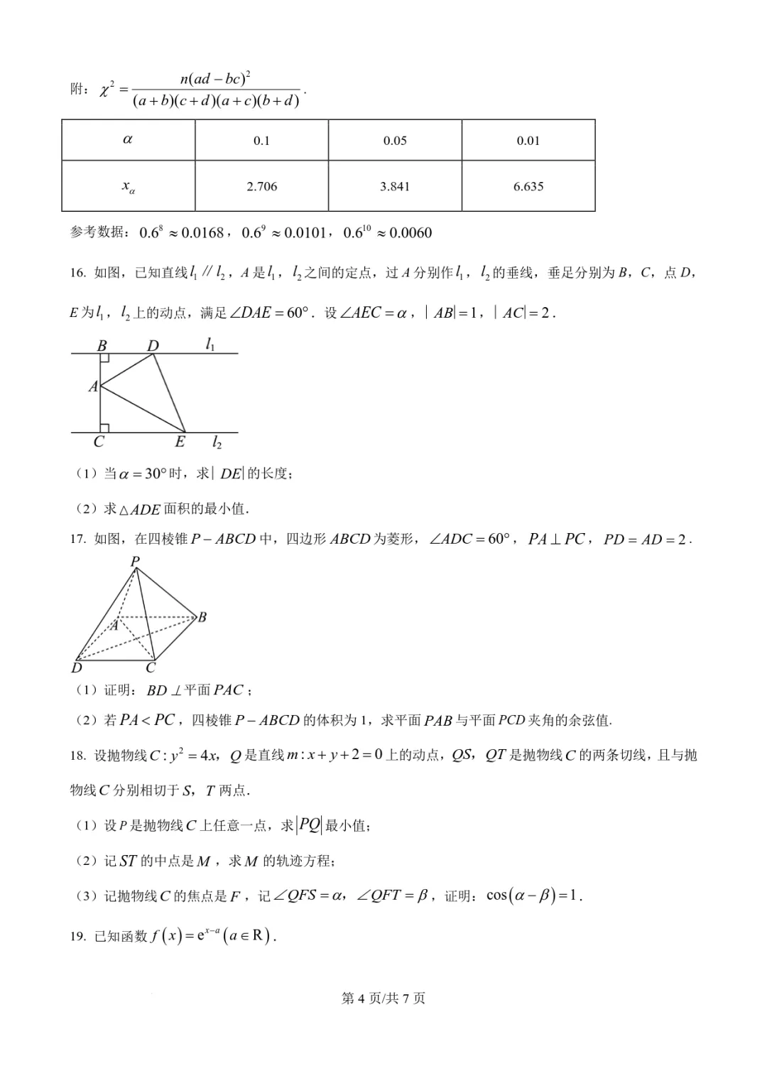 深圳外国语学校2026届高三年级第七次阶段性考试数学试题+答案。