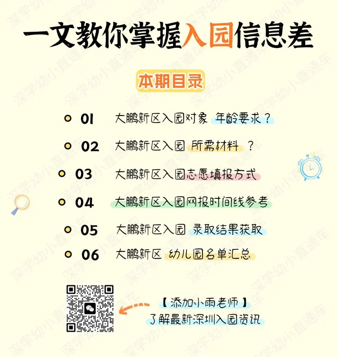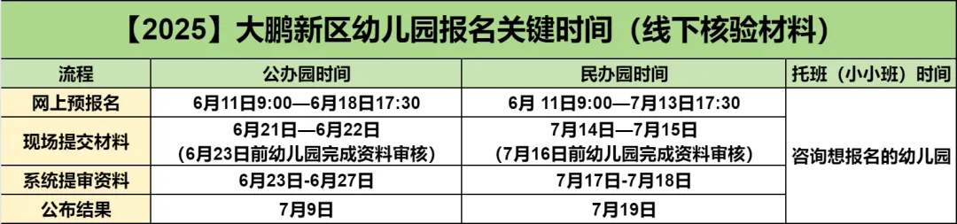 1.《大鹏新区幼儿园秋季班学位申请表》一份。家长网上预报名成功后,从系统导出申请表签名提交。