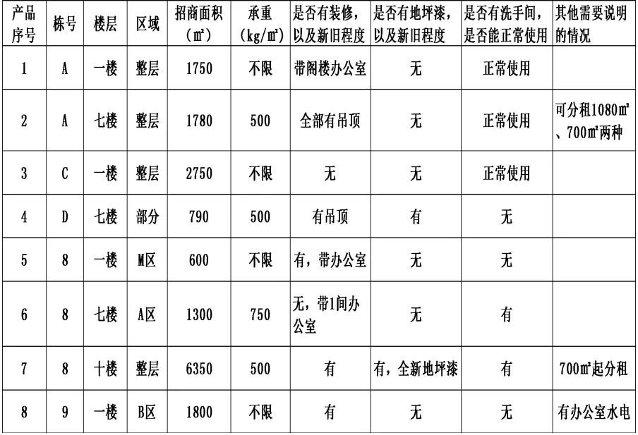 园区建筑面积约20万㎡,一期拥有厂房六栋,每栋六层,为标准重工业厂房;二期拥有标准重工业厂房二栋,每栋十层,单层 8000㎡。