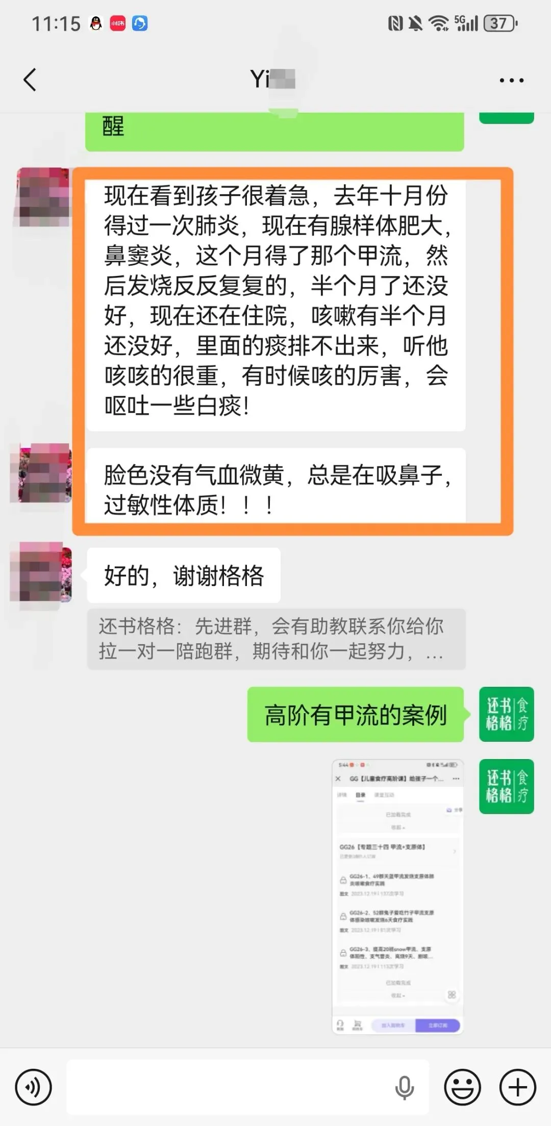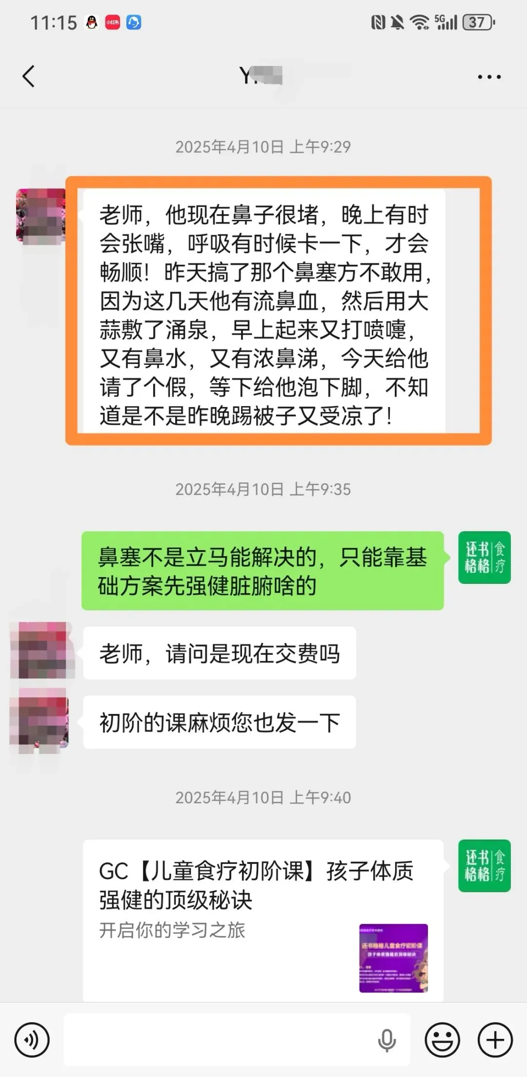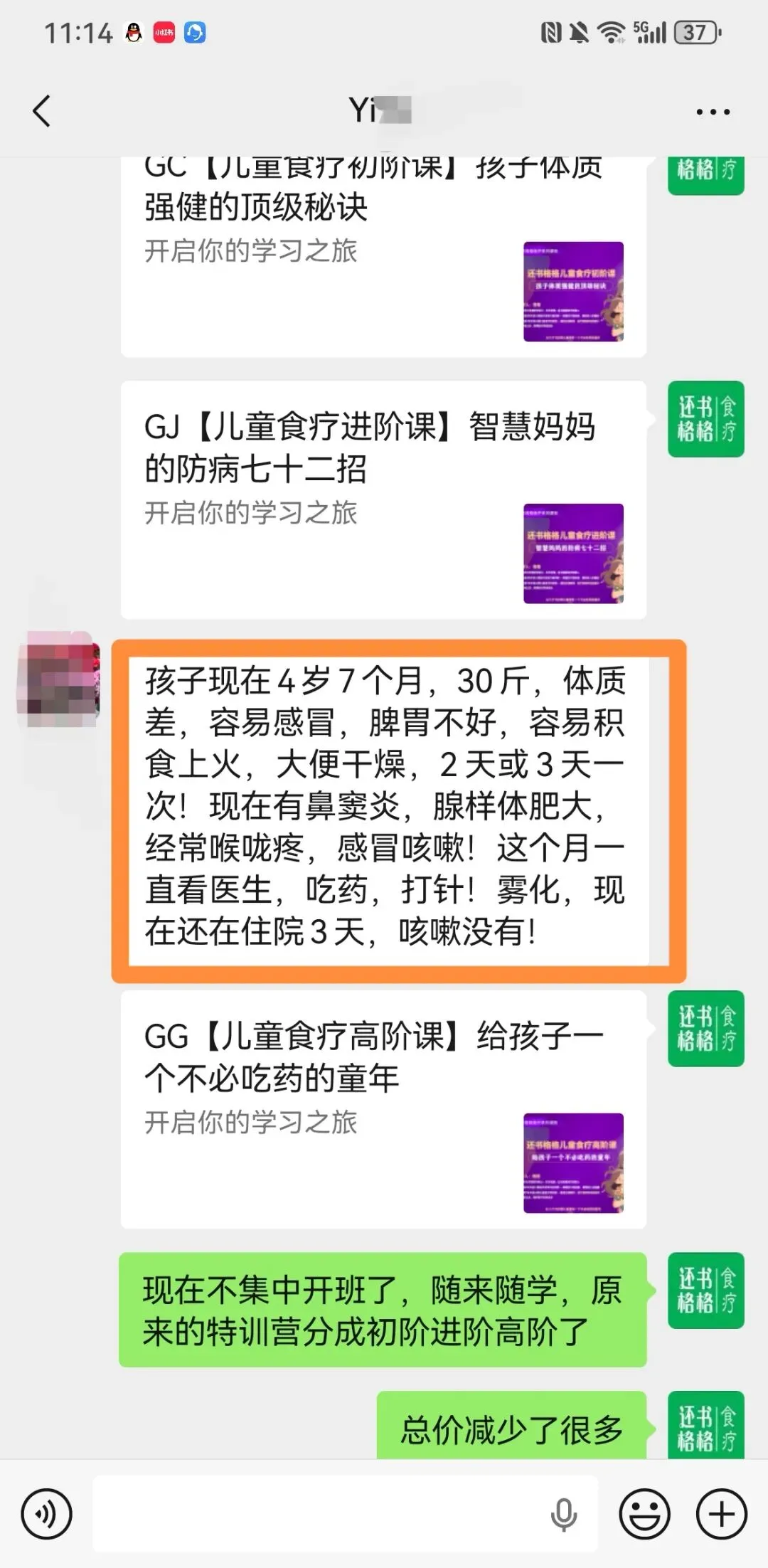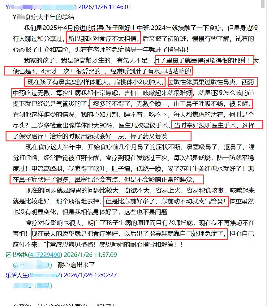 食疗对我影响也很大,明白了孩子生病的原理而且有老师托底,现在我不再焦虑不在害怕!