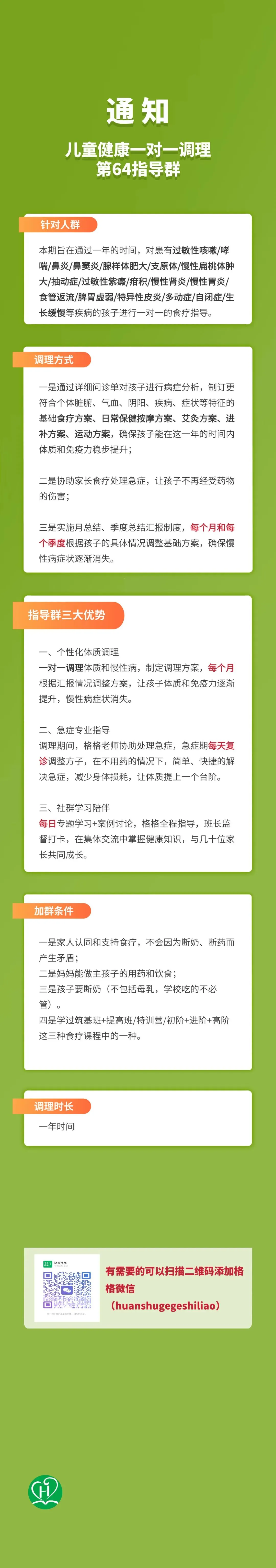 儿童一对一健康调理指导 64 群正在收诊中,有需要的家长加还书格格微信(huanshugegeshiliao)。