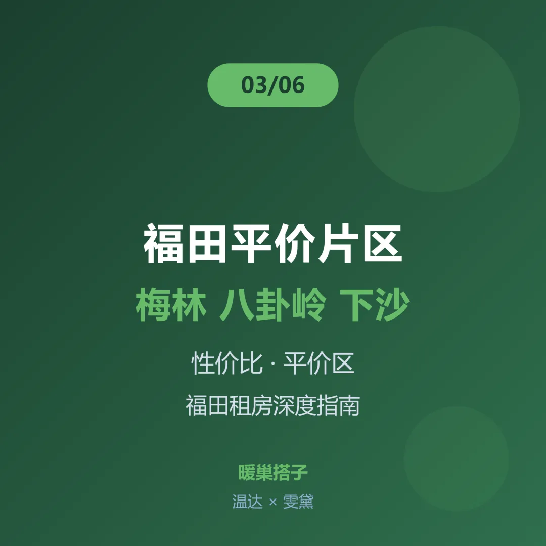 📌 这是「暖巢搭子对谈」福田租房深度指南系列的第 3 篇,后续还有通勤匹配方案、生活配套实测、避坑省钱锦囊等内容,记得关注不迷路。📌 下一篇:福田上班住哪划算?4场景匹配——在 CBD、车公庙、华强北、河套上班,分别住哪最聪明。