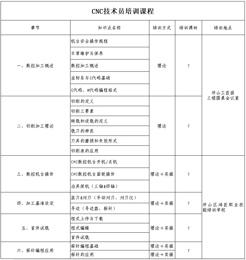 (三)培训地点:坪山工匠园、坪山区鸿匠职业技能培训学校;