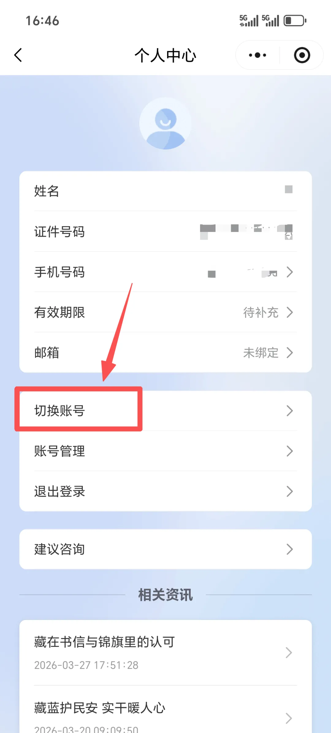 选择切换账号