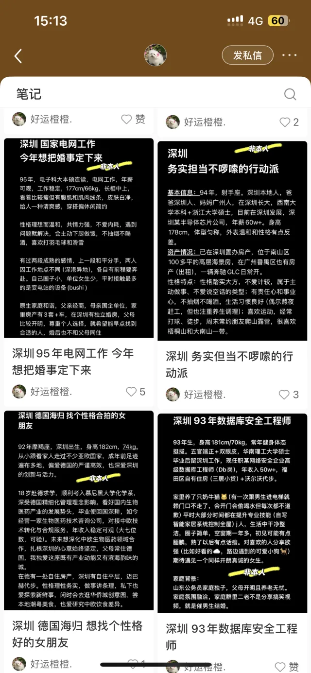“95年,半导体芯片工程师,圈子干净,真诚找考虑结婚的另一半”“深二代女教师,清纯可爱,期待有缘的他”“体制内稳定工作,房车齐全,诚寻三观契合的伴侣”……小红书、抖音等社交平台上,此类标准化文案看似真诚脱单诉求,实则是一个个“诱饵”。