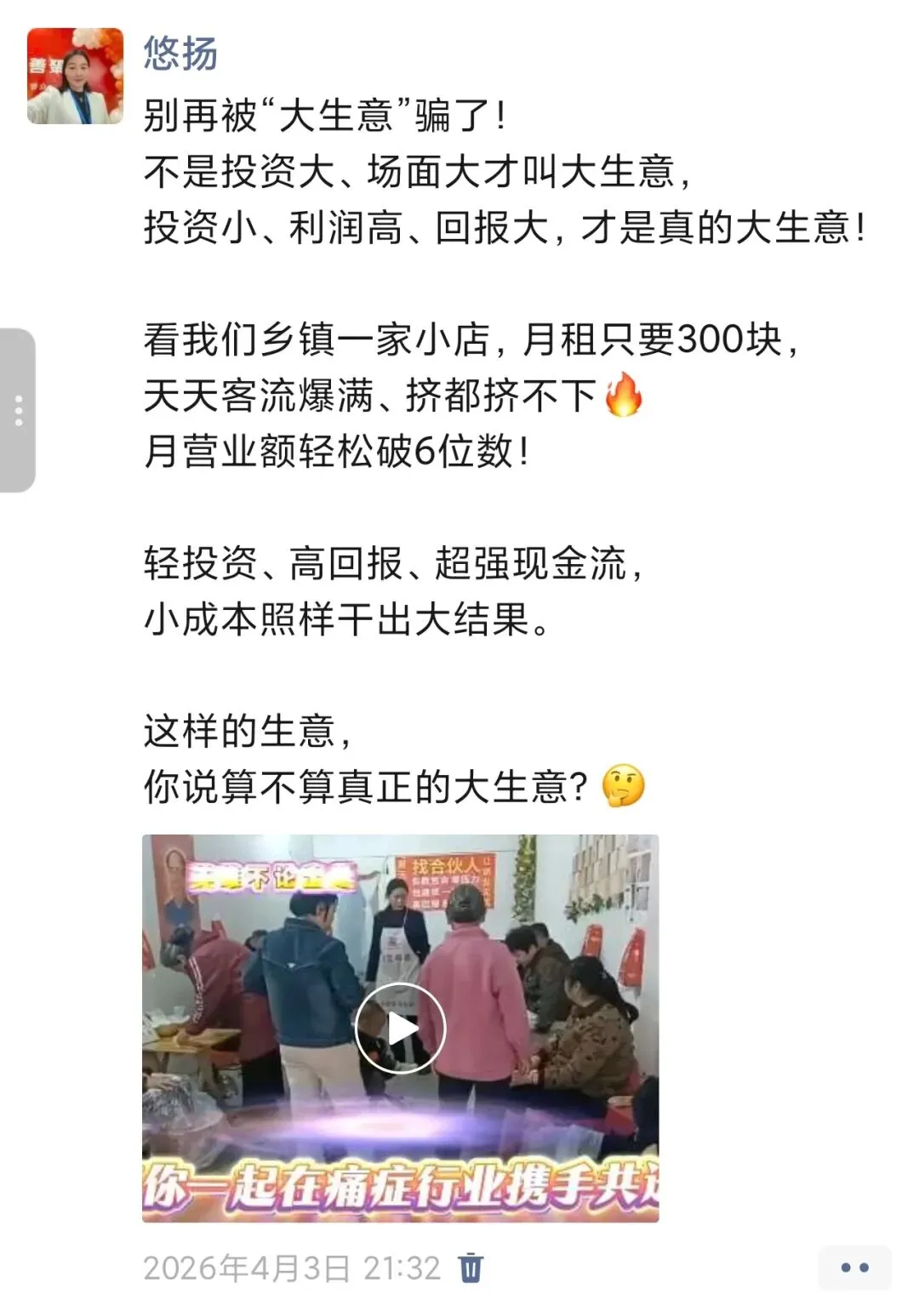 一是帮用户解决了「痛症亚健康」的健康问题,二是帮创业者解决了「低风险创业」的财富问题。