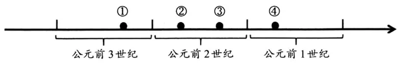 17.有学者认为,中国的张骞两次通西域,开辟了中外交流的新纪元,并成功将东西方之间最后的珠帘掀开。张骞第一次出使西域的时间应标注在如图年代尺的( )