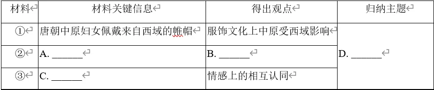 (2) 阅读材料一,完成如表表格。