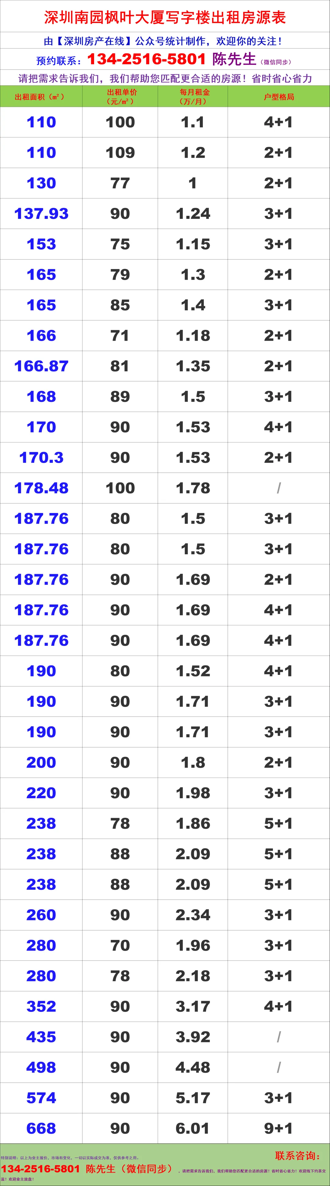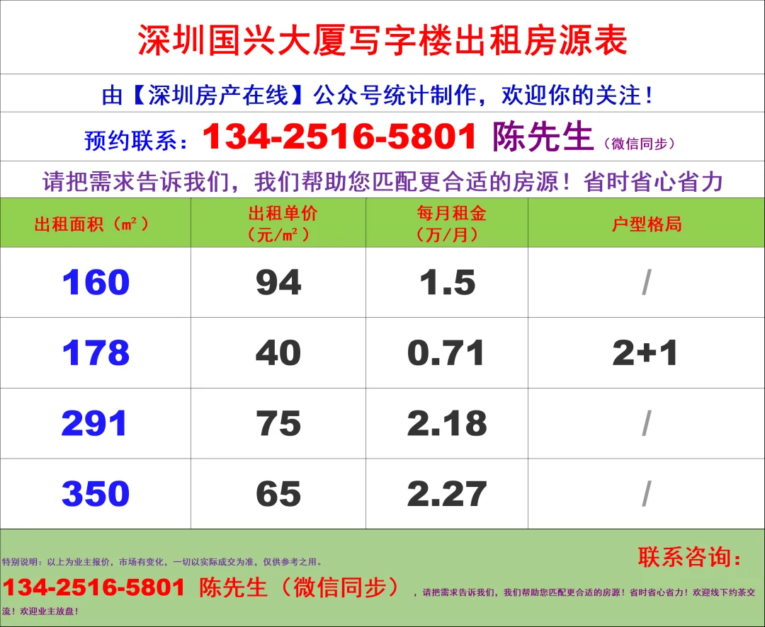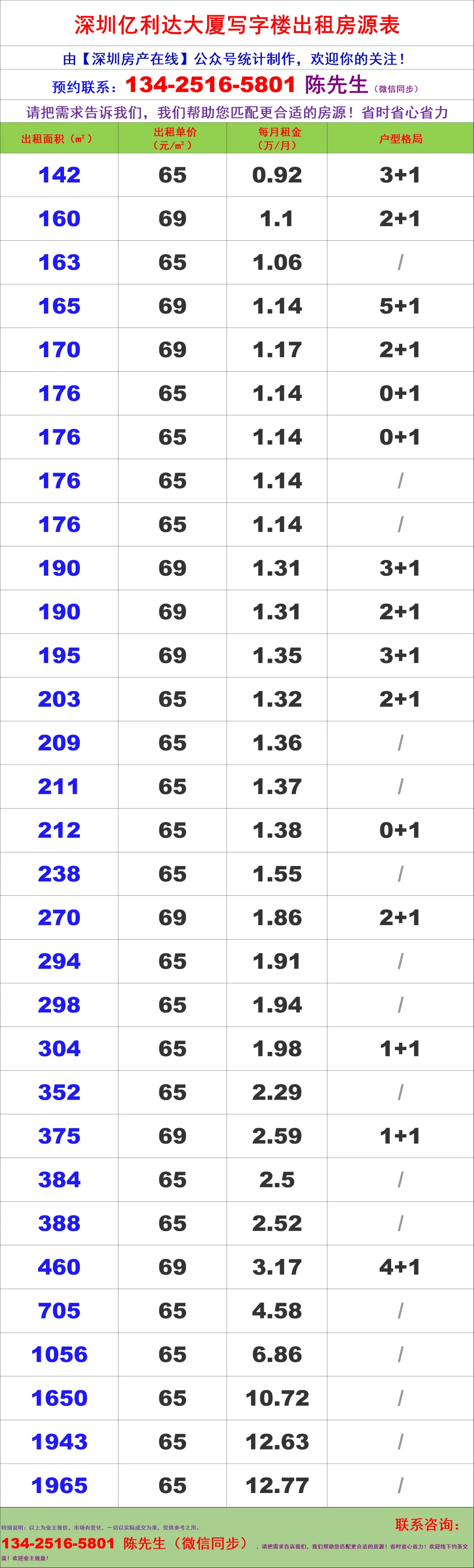 【深圳房产在线】陈经理写字楼租售团队:134-2516-5801 (微信同步)