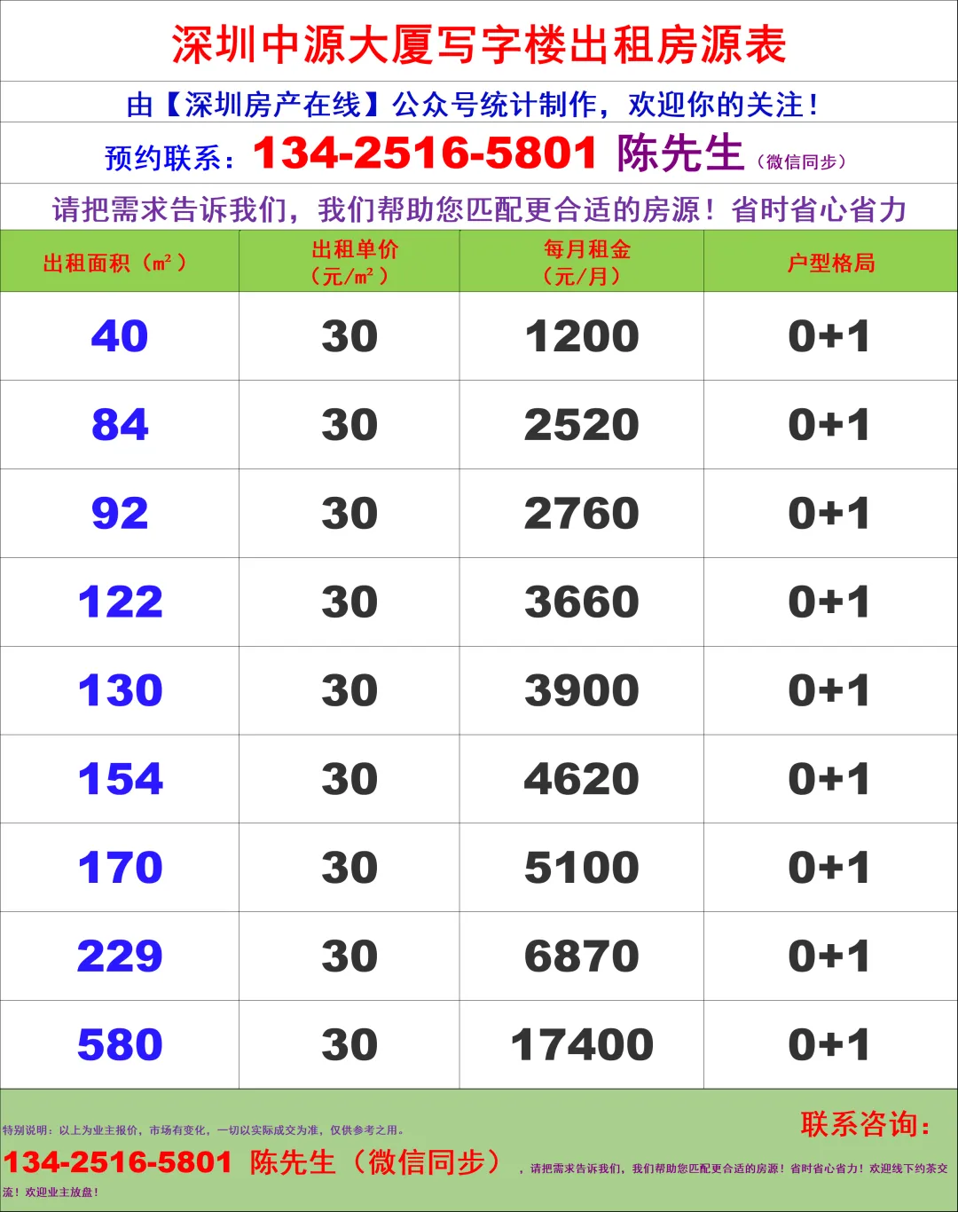 说明:市场有变化,以上房源数据仅供参考之用,一切以实际成交数据为准,【深圳房产在线】陈经理团队:134-2516-5801(微信同号)深圳光明区中源大厦甲级写字楼办公室火热招租|凤凰城地铁口核心商圈现楼全球招商