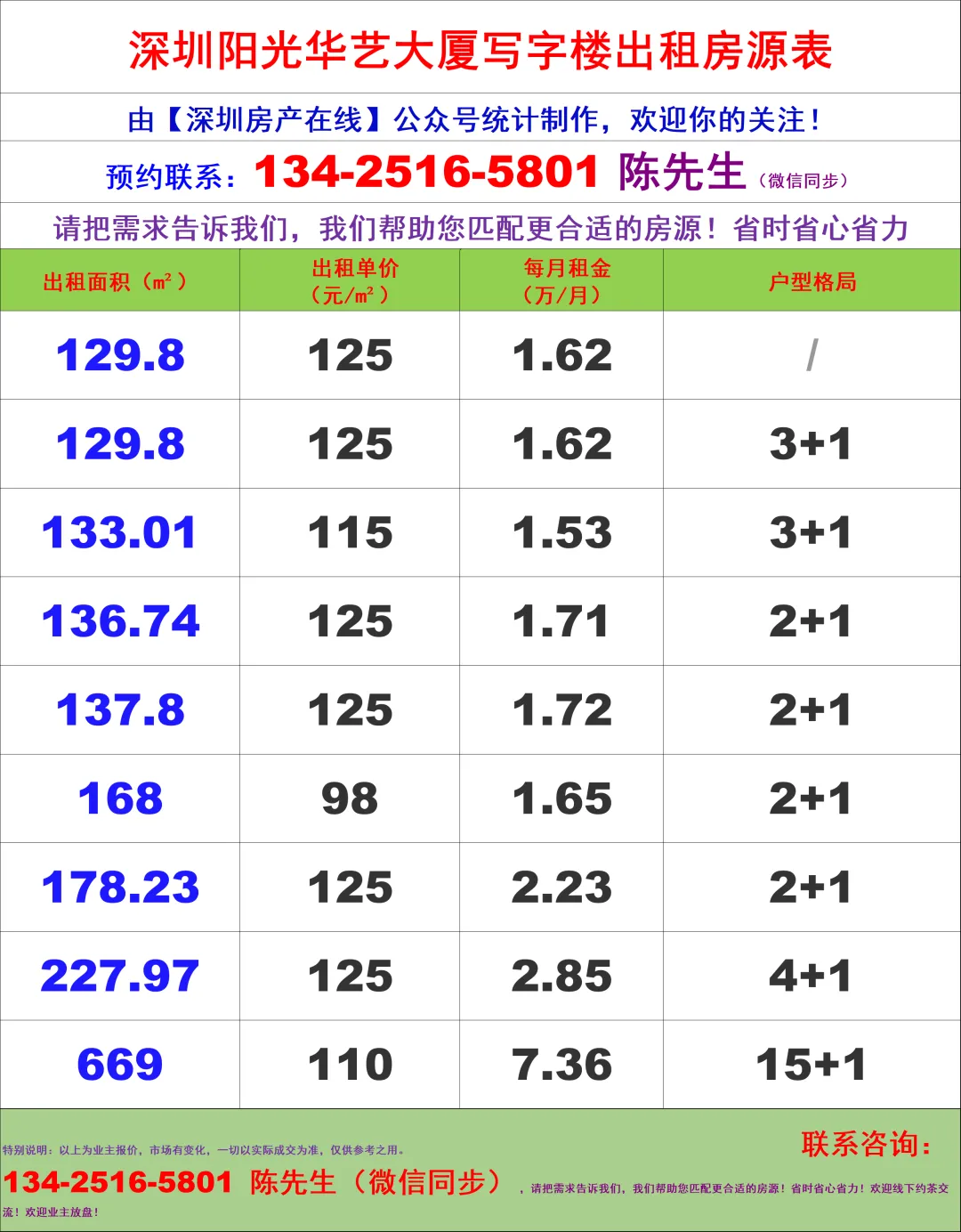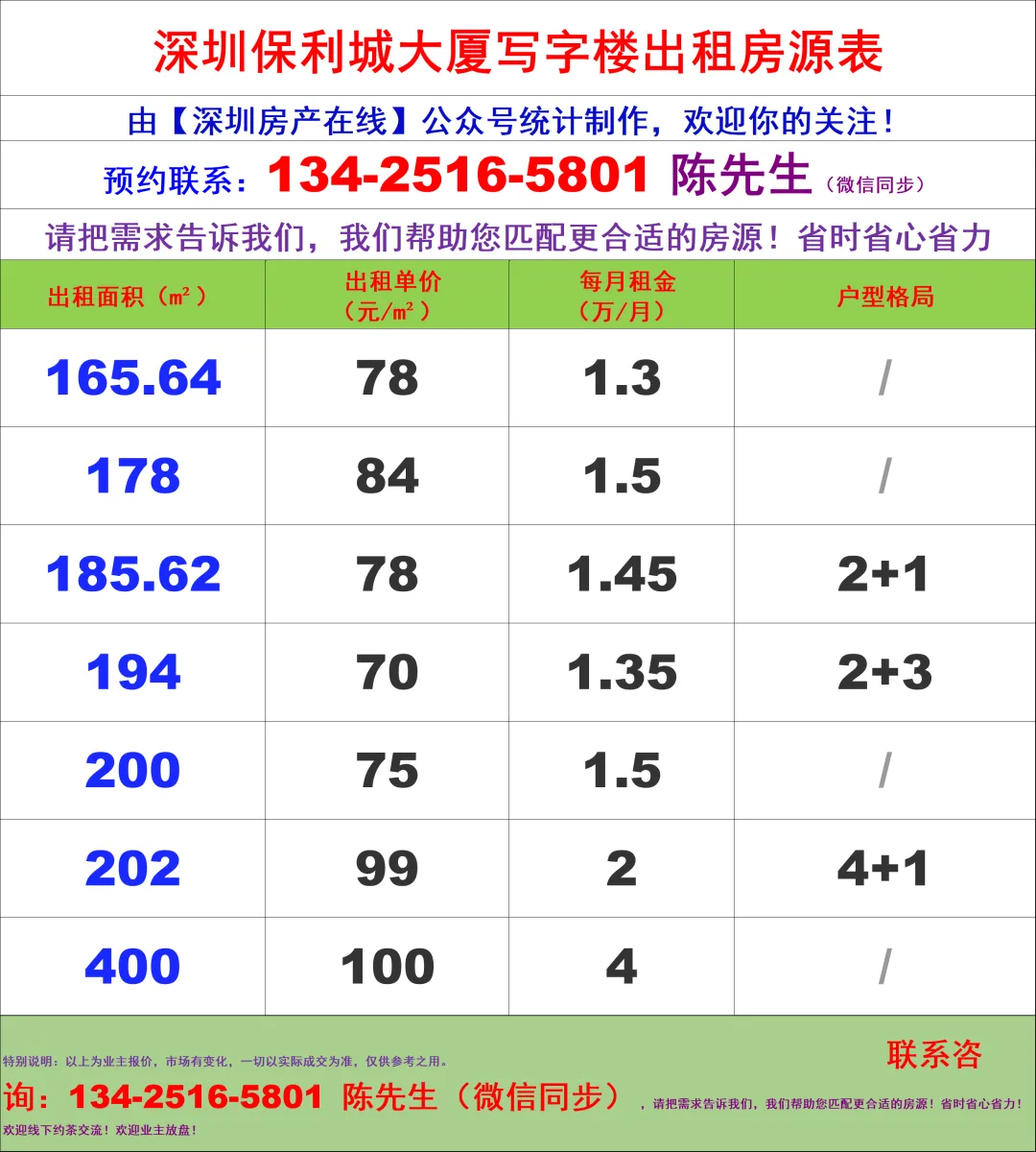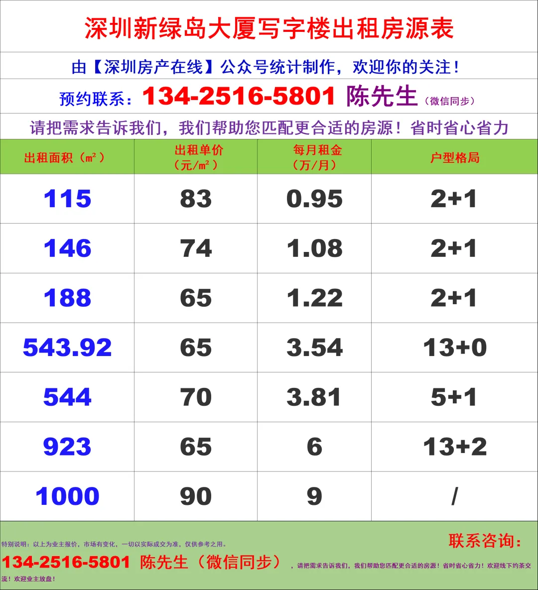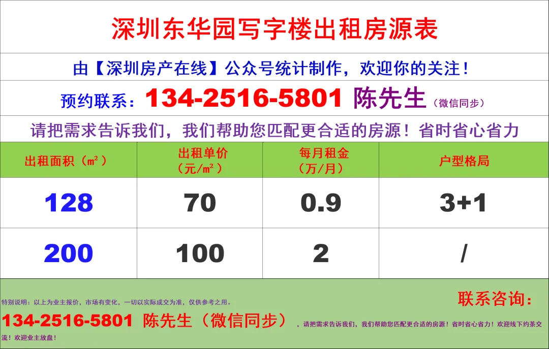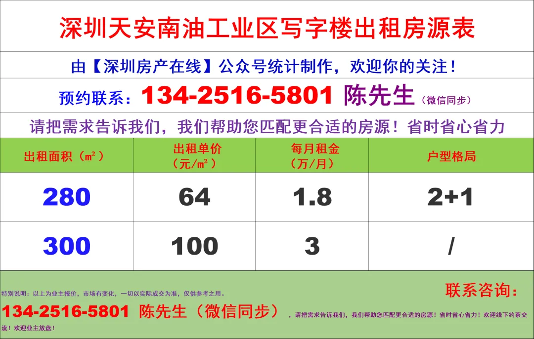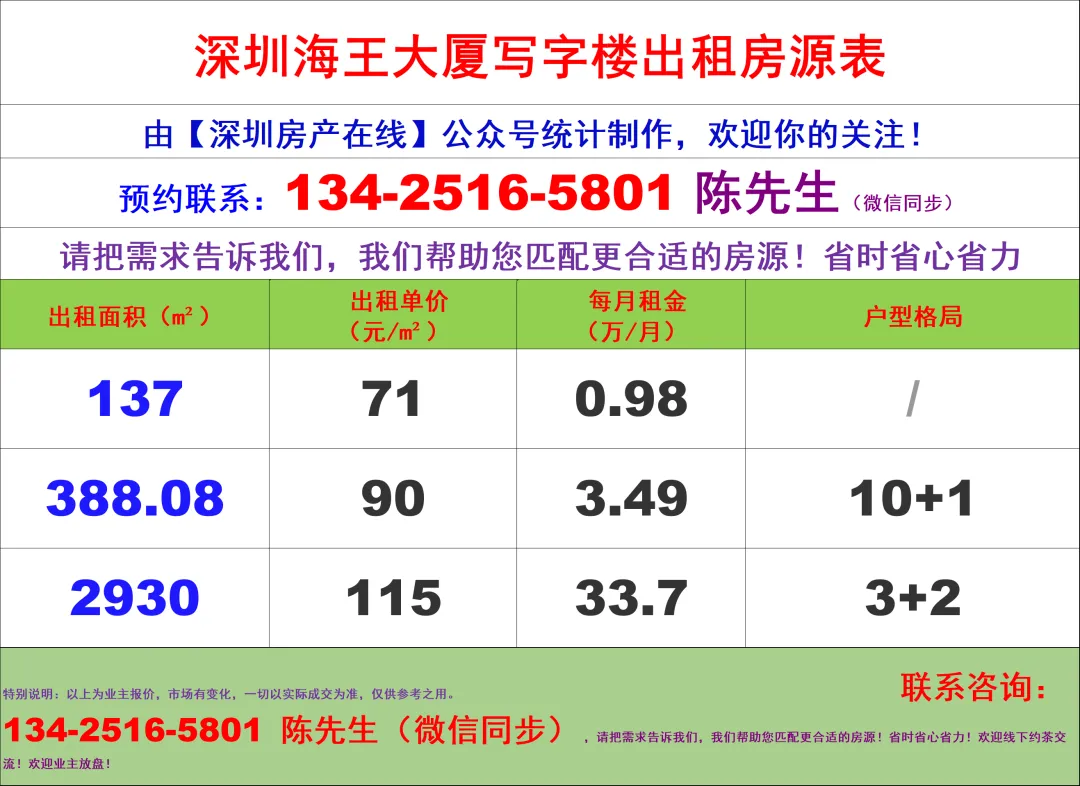 【深圳房产在线】陈经理写字楼租售团队:134-2516-5801 (微信同步)