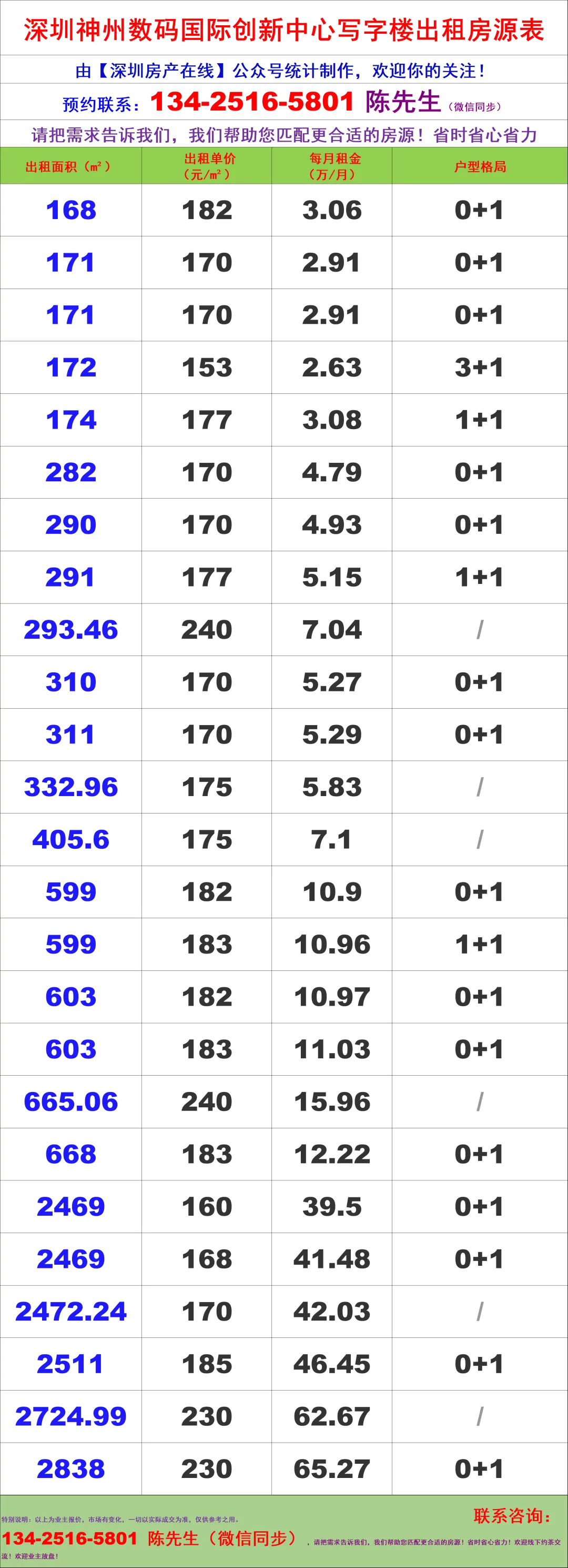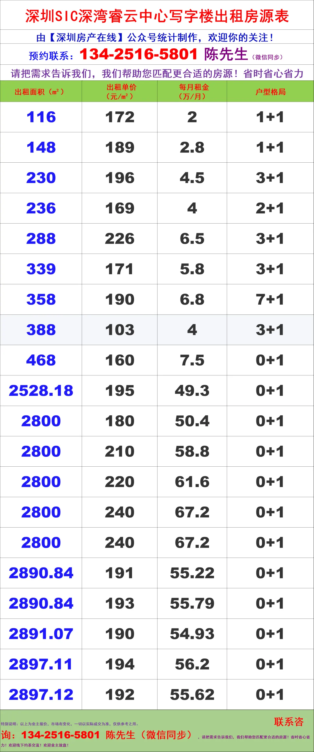 【深圳房产在线】陈经理写字楼租售团队:134-2516-5801 (微信同步)