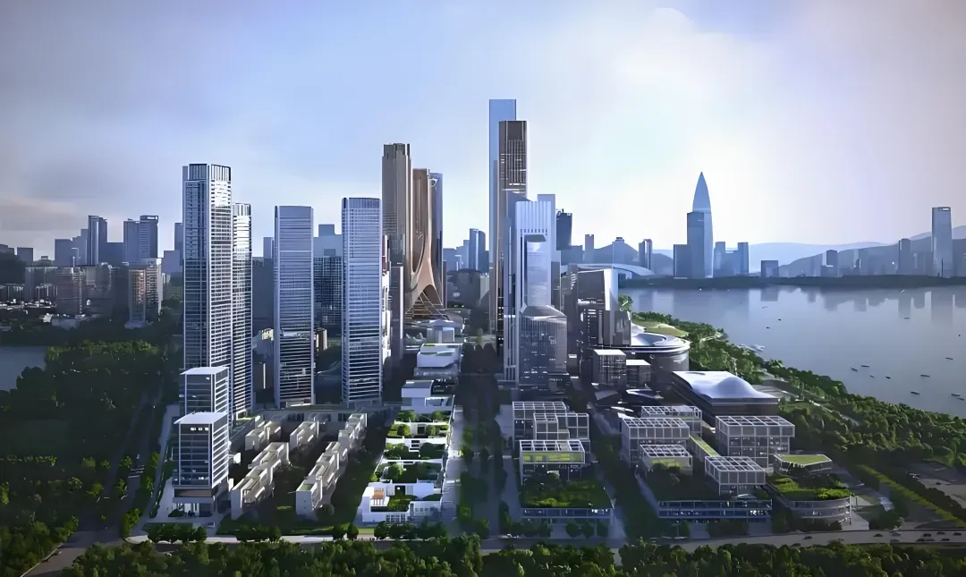 大厦简介:神州数码国际创新中心位于深圳市南山区深湾二路与白石三道交汇处东北角,是深圳湾超级总部基地的核心地标之一,2024年竣工。项目总建筑面积约20.6万平方米,东塔43层、西塔47层,集超高层办公、独栋办公、高端公寓、商业于一体。交通极为便捷:距地铁9/11号线红树湾南站仅约268米,距2号线红树湾站约150米,未来接驳穗莞深城际,6轨交汇。大厦荣获LEED金级预认证,标准层高4.5米,配备21部三菱高速电梯,500个停车位,自带约3.4万㎡低密度开放式街区商业,坐拥一线湿地美景,是总部企业的理想生态办公空间。