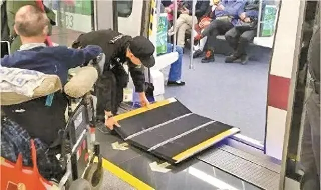截至目前,深圳地铁全线485个地铁站,均已实现无障碍设施100%全覆盖,这些设施包括盲道、盲文、无障碍垂直电梯等。同时,在深圳地铁列车上还有特殊配置的无障碍车厢,方便轮椅乘客进行固定;在每个地铁站口,都设置有爱心坡道;在站台上每当看到轮椅乘客准备上车,工作人员都会在列车和站台间搭好挡板,方便轮椅进出。