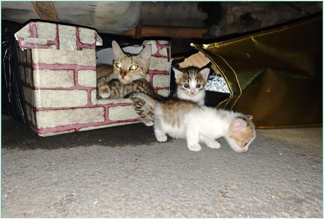 我把猫妈和三只小猫一起转移到一个纸箱里,叫了货拉拉送到最近的24小时宠物医院,到医院已经凌晨一点了,医生检查完说猫妈有轻度脱水和上呼吸道感染,体温39.8,三只小猫里面最小的那只体重只有90克,严重营养不良,需要人工喂奶续命,另外两只状态稍微好一点但也需要驱虫和补液。医生说这一窝如果再晚几个小时发现,袋子里面的温度加上猫妈的高烧,小猫大概率撑不过今晚。我听完以后没说话,只是签了住院单,虽然这个月已经救了四只了账上快见底了,但我知道我不可能把她们放回那个袋子里。