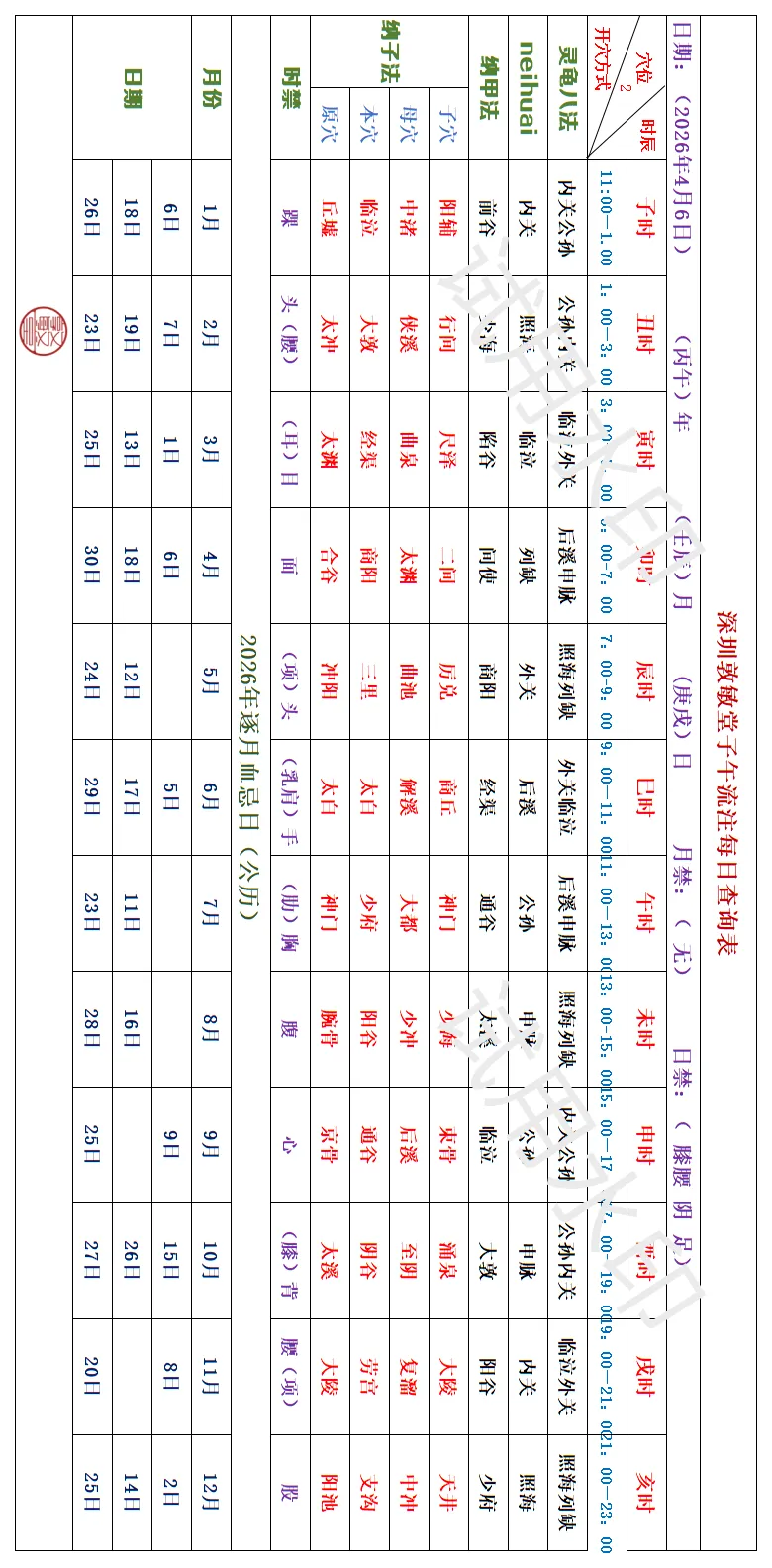 深圳敦敏堂《子午流注:今日开穴》 2026 4月6日