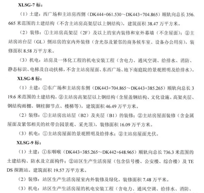 本次招标共划分为4个标段:XLSG-6、7、8、9,详细内容如下:
