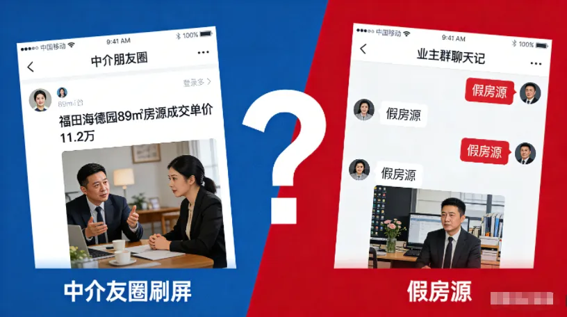福田海德园,一套89平米的房子,传出以单价约11.2万成交。消息疯狂刷屏,但紧接着,业主群出面否认,直指这是“假房源”。