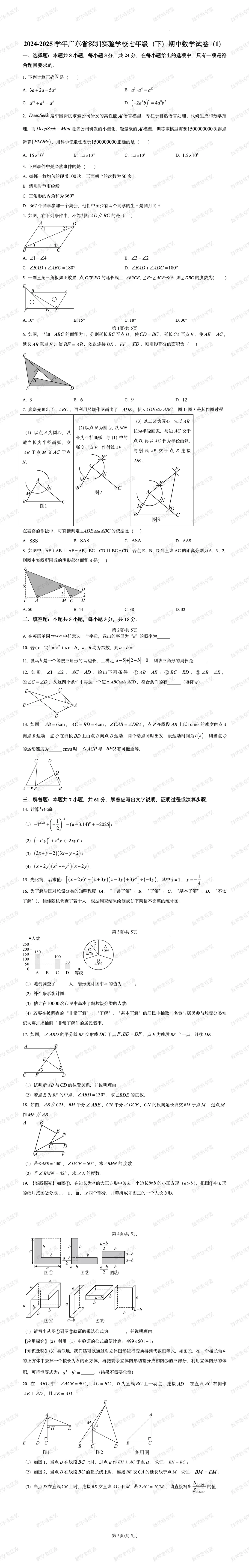 深圳市实验学校2024-2025学年数学七下期中试卷