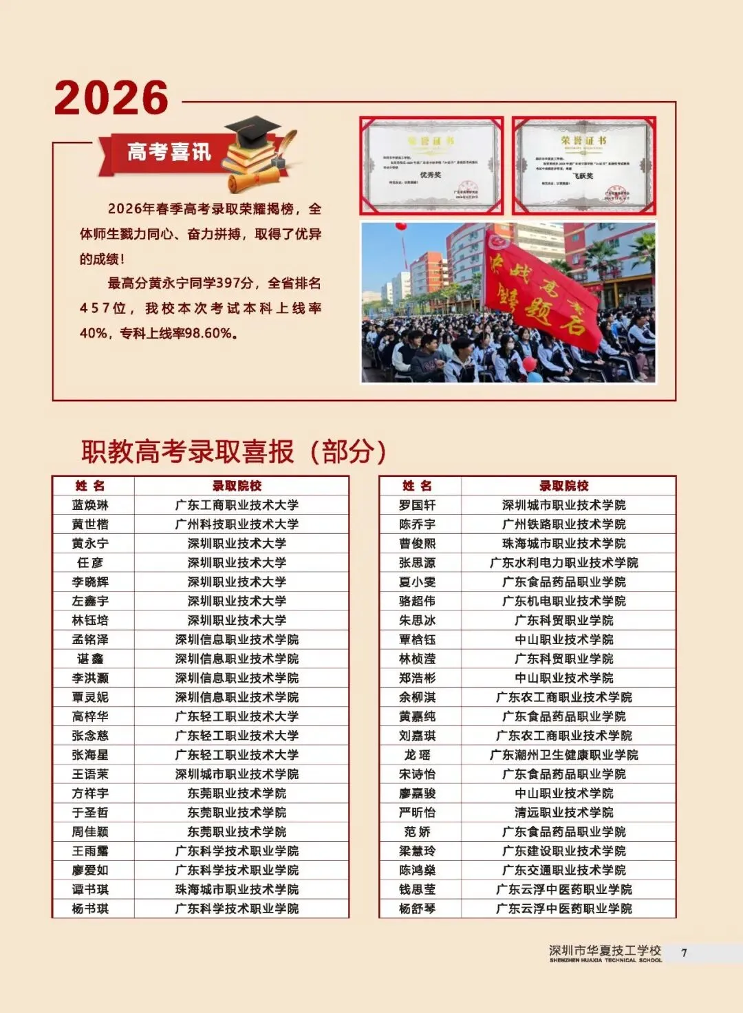 深圳市华夏技工学校(坪山校区)2026年招生简章