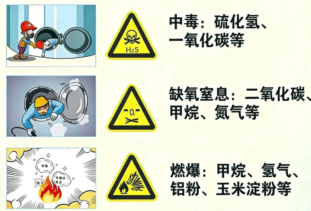 它们的共同点很简单:空间狭小、进出不便、通风不良、易造成有毒有害、易燃易爆物质积聚或氧含量不足。