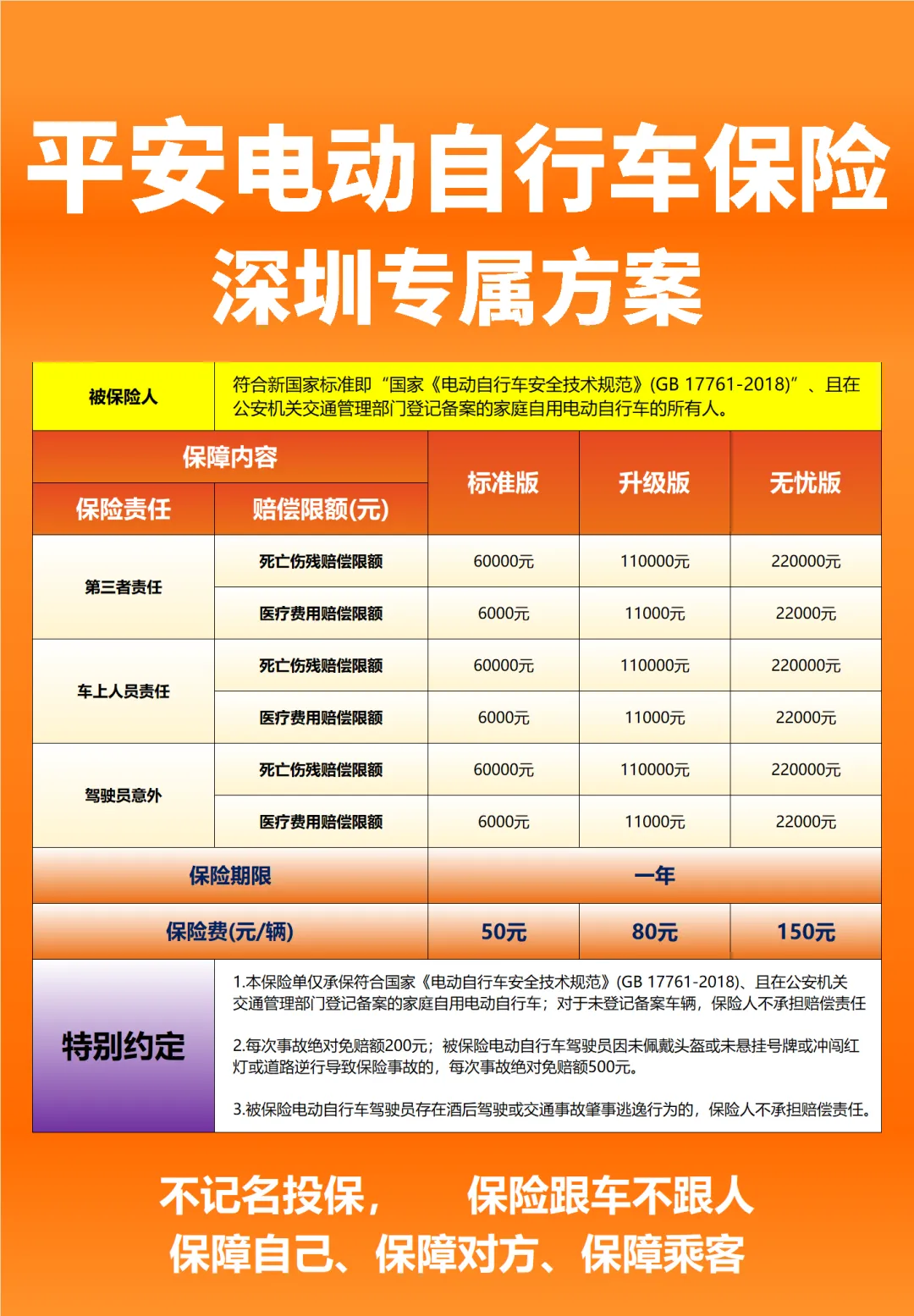 不记名投保!不用绑定驾驶人,不管是自己骑、家人骑、朋友临时借车,只要是这辆合规上牌的深圳电动车,出了事故都能赔,灵活又省心!