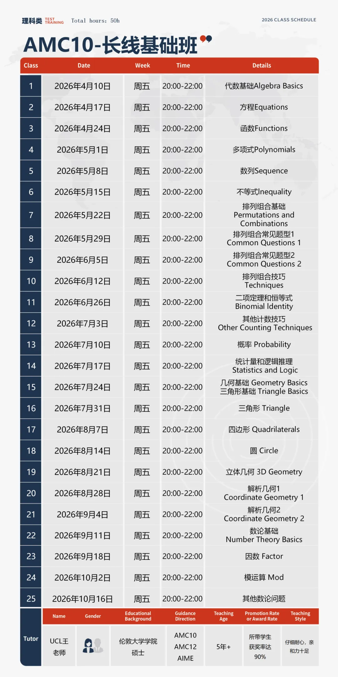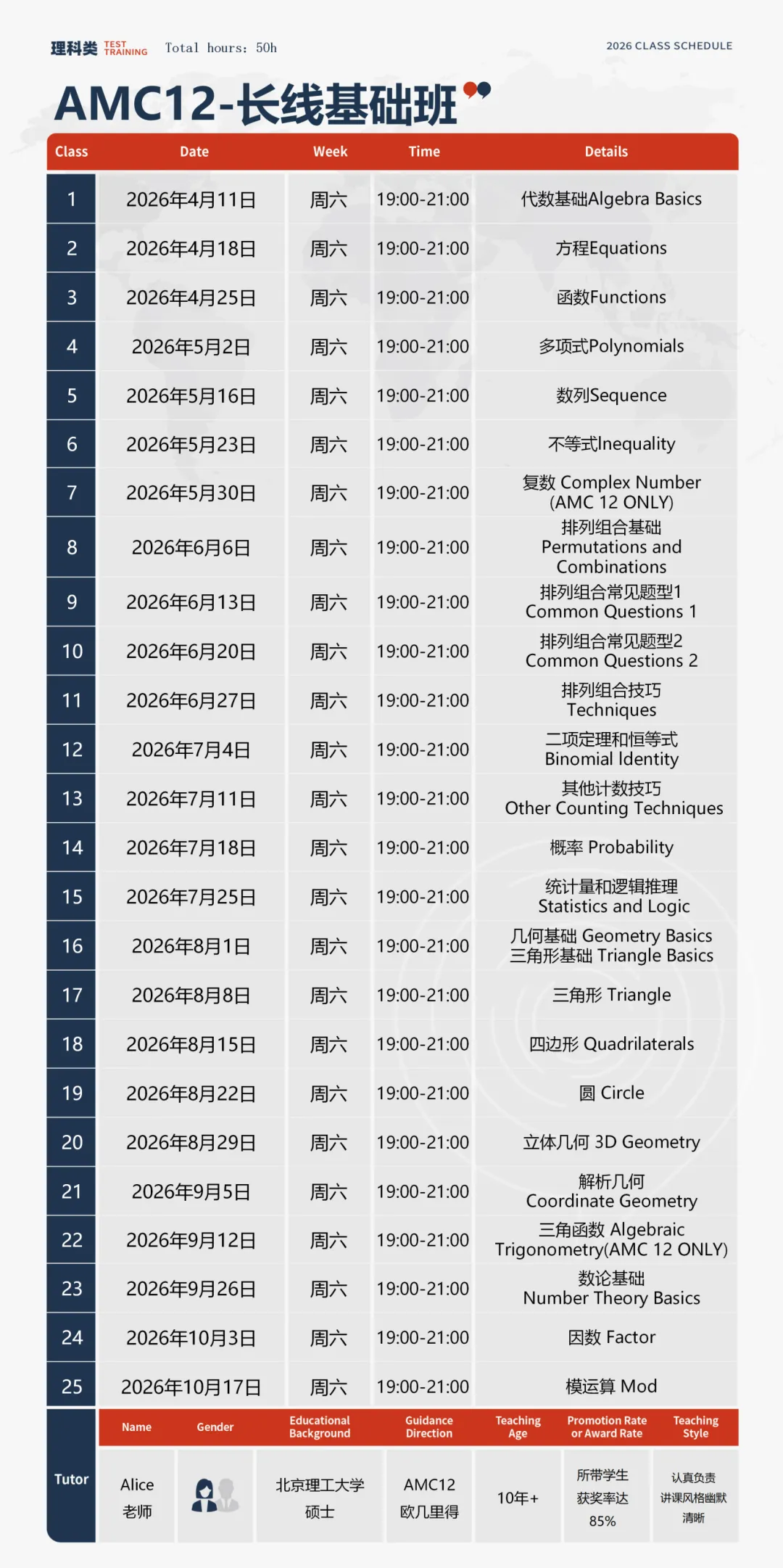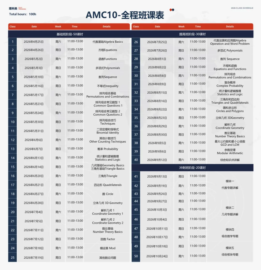 AMC10全程班开课时间:4月25日 - 10月24日