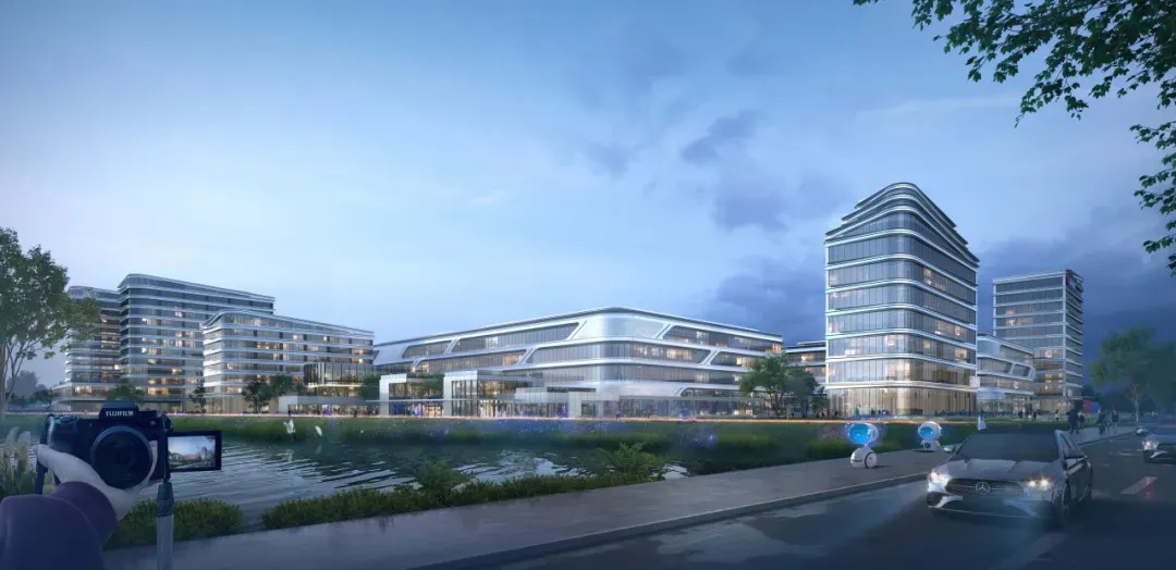 尊重场地环境,建筑与区域景观深度融合;结合地形有序布局,构建层次清晰、序列丰富的空间与景观体系,营造兼具现代气质与秀美趣味的园区。