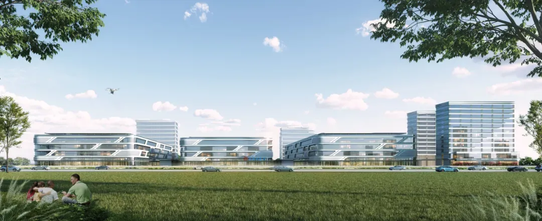 以人车分流梳理安全高效的交通网络;将绿色与建筑有机结合,精雕细部、丰富立面,打造韵律灵动、格调鲜明的现代园区。