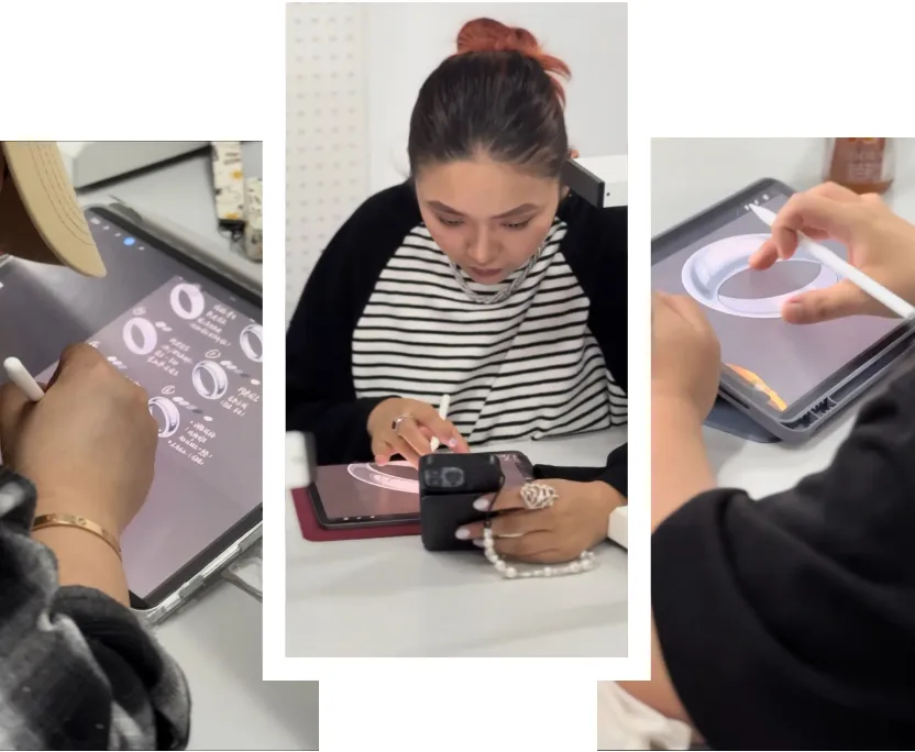 513#GIC首饰设计(ipad手绘)初级证书课程将介绍ipad中适配于首饰手绘软件的基本功能及操作,课程内容包括宝石的画法、金属的画法、其他材质的画法、镶嵌的画法、三视图的画法、透视图的画法、效果图的画法等内容。课程优势在于可以在技法学习的基础上帮助学员建立自己的宝石素材库、首饰素材库等。